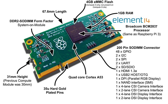 Caratteristiche Raspberry Pi CM3L
